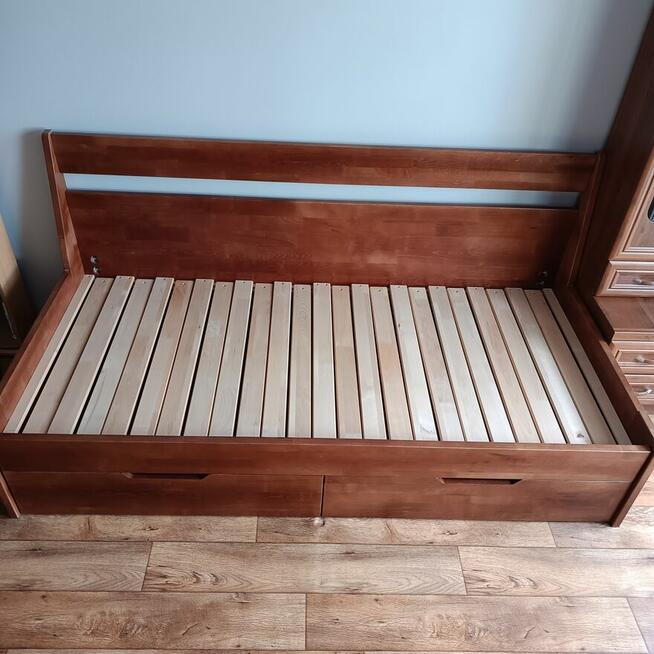 Łóżko bukowe mocne wysuwane stan bardzo dobry. Powierzchnia spania 90x200 lub 180x200 Dwie szuflady na ...
